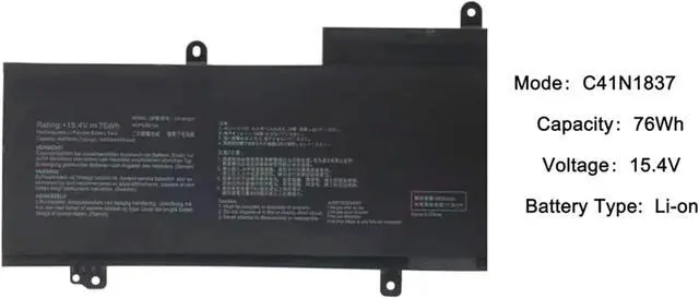15.4V 76Wh C41N1837 Batería de Repuesto para computadora portátil Compatible for ASUS ROG Zephyrus GA502D GA502DU GA502GU GA532DU GU502DU GU502GU GU502GV GU502GW GU532GU GU532GV Series