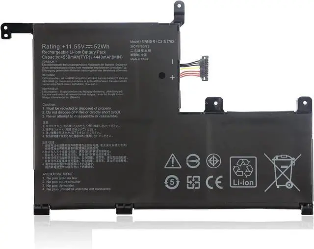 11.55V 52Wh 4550mAh C31N1703 3ICP6/60/72 0B200-02650100 Batería de Repuesto para computadora portátil Compatible for Asus Flip UX561UA UX561UN Q505UA Q525UA Q525UA-BI7T9 Q505UA-BI5T7 Series