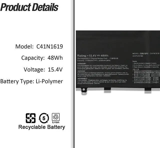 15.4V 48Wh 3120mAh C41N1619 Batería de Repuesto para computadora portátil Compatible for Asus Pro Advanced B9440 B9440UA BU404UA ASUSPRO B9440UAV B9440FA-GV0019R B9440UA-XS74 Series