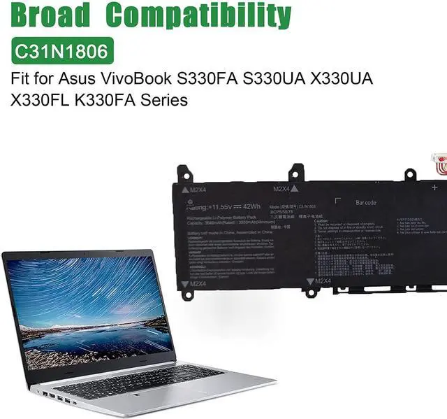 11.55V 42Wh C31N1806 C31PIJ1Batería de Repuesto para computadora portátil Compatible for Asus S330FA S330UA X330UA X330FL K330FA Series