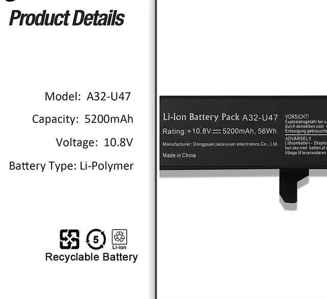 10.8V 56Wh A32-U47 A41-U47 A42-U47 Batería de Repuesto para computadora portátil Compatible for Asus U47 U47A U47C U47V U47VC Q400 Q400A Q400C Q400V Q400VC R404 R404A R404C R404V R404VC