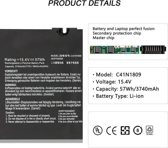 15.4V 57Wh 3740mAh C41N1809 Batería de Repuesto para computadora portátil Compatible for Asus Flip 15 UX562FD UX562FDX UX562 UX562FN Q536F Q536FD Series
