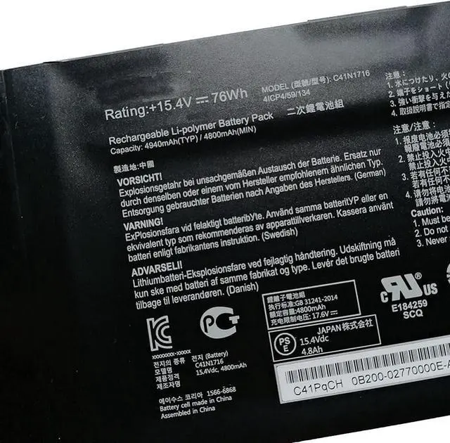 15.4V 76Wh C41N1716 Batería de Repuesto para computadora portátil Compatible for ASUS ROG Strix GL703GS GL703GM S7BS S7BS8750 GL703GM-DS74 GL703GM-WS74 GL703GS GL703GS-DS74 Series