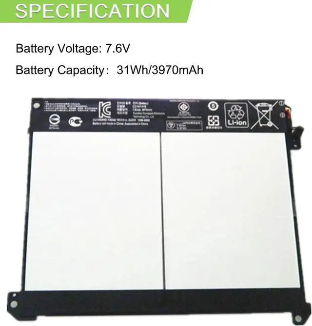 7.6V 31Wh 3970mAh C21N1418 Batería de Repuesto para computadora portátil Compatible for Asus Transformer T300CHI Series 12.5