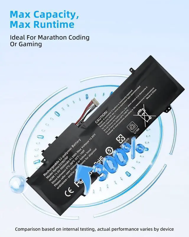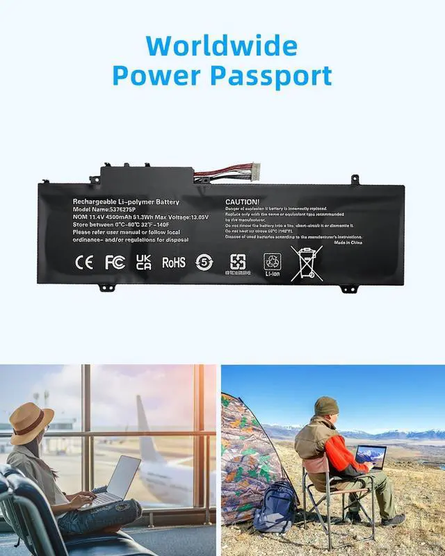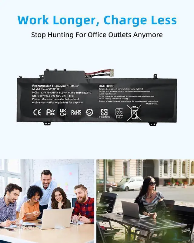 SPECIFICATION : Model Name: 5376275P Voltage:11.4V; Capacity:51.3Wh/4500mAh. Grade A cells ensure fast charges and low power consumption; Built-in circuit protection ensures both safety and stability. Condition: 100% New; Battery life: More than 1000 cycles.