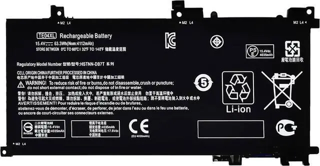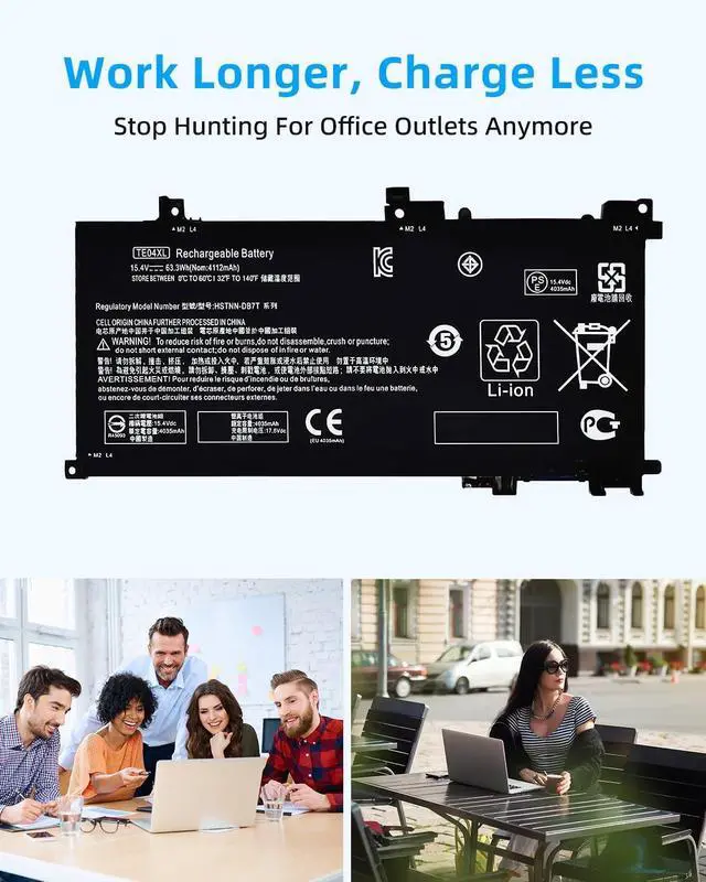 SPECIFICATION : Model Name: TE04XL Voltage:15.4V // Capacity:63.3Wh 4112mAh 4-Cell Grade A cells ensure fast charges and low power consumption; Built-in circuit protection ensures both safety and stability. Condition: 100% New; Battery life: More than 1000 cycles.