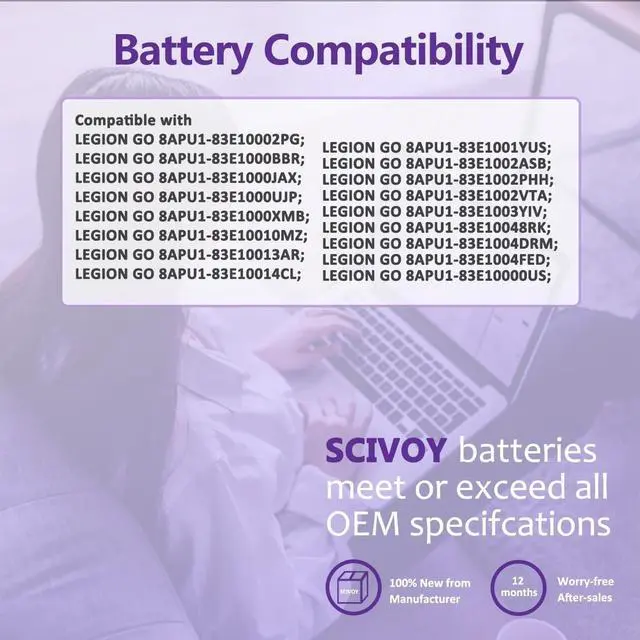 Long-Lasting Battery Life: With 7.82Vcapacity (81Wh/10360mAh), the (L23M2PK0) battery ensures all-day power for your laptops in a factory-fresh, never-used battery pack designed for maximum performance.