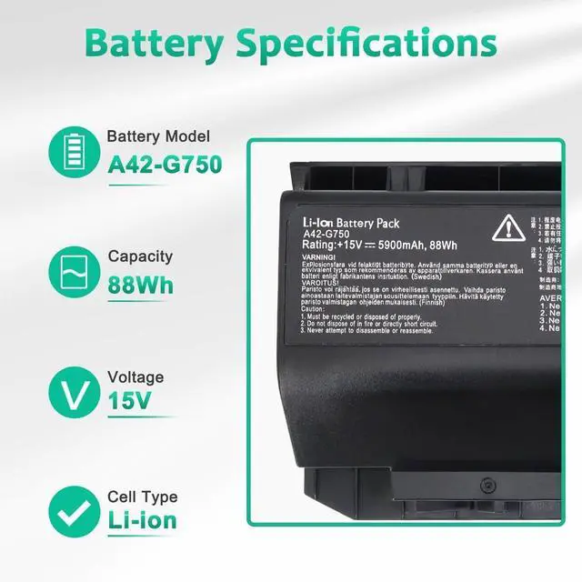 LONG-LASTING BATTERY LIFE: With 15Vcapacity (88Wh/5900mAh/8-cell), the (A42-G750) battery ensures all-day power for your laptops in a factory-fresh, never-used battery pack designed for maximum performance.