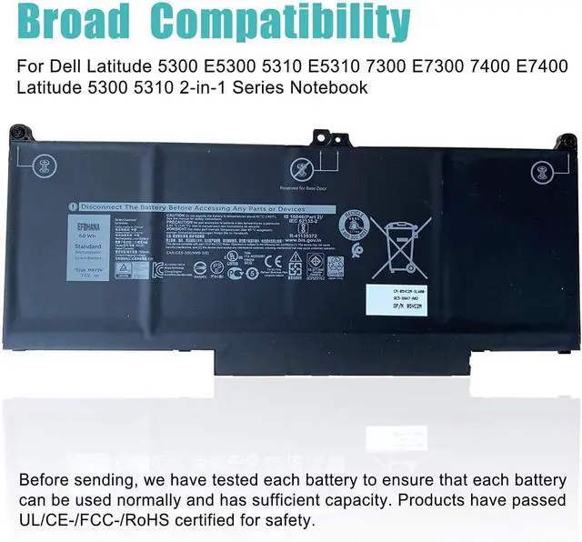 MXV9V Batería de Repuesto para computadora portátil Compatible for Dell 5300 E5300 5310 E5310 7300 E7300 7400 E7400 5300 5310 2-in-1 Series 5VC2M 05VC2M 829MX 0829MX 7.6V 60Wh 7500mAh