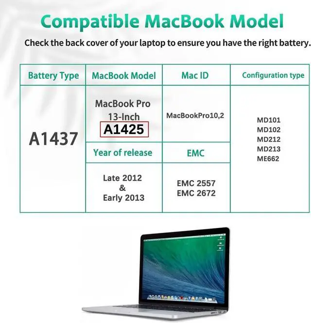 GUARANTEED FIT THESE LAPTOP MODELS: Compatible with MacBook Pro 13-Inch Retina Model A1425 (Late 2012, Early 2013) laptop.