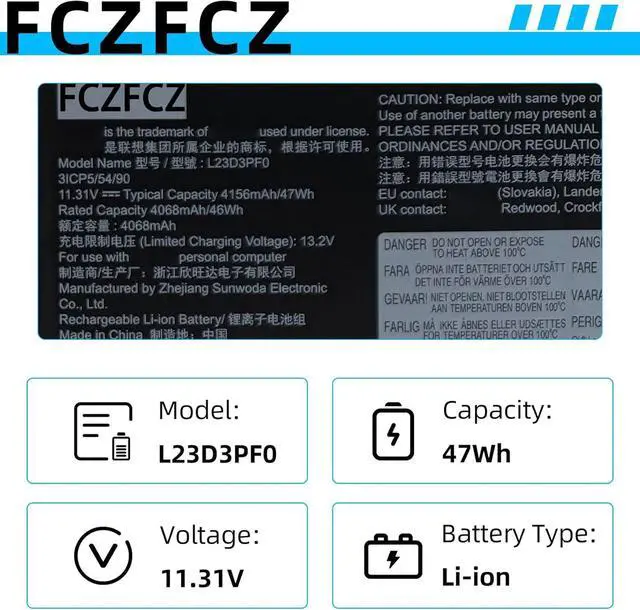 SpecificationsBattery Model: L23D3PF0 // Voltage:11.31V // Capacity:47Wh 4156mAh // Color:Black // Condition:Brand New.