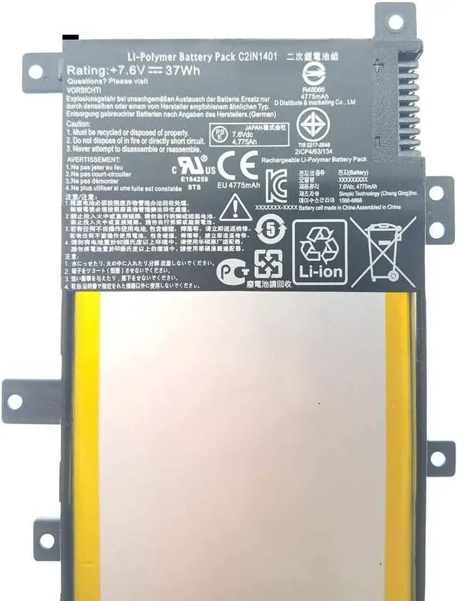 7.6V 37Wh C21N1401 Batería de Repuesto para computadora portátil Compatible for Asus X455 X455L X455LA A455L A455LD A455LN F455L K455L X454W Y483LD W419L C21PqCH