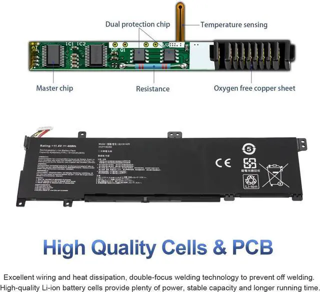 48Wh B31N1429 Laptop Battery Compatible for Asus K501U K501UB K501UQ K501UW K501UX K501UXM K501L K501LB K501LX A501LB A501LX A501U A501UX R516U R516UX R516UW R516L R516LX R516LB V502L V502LX