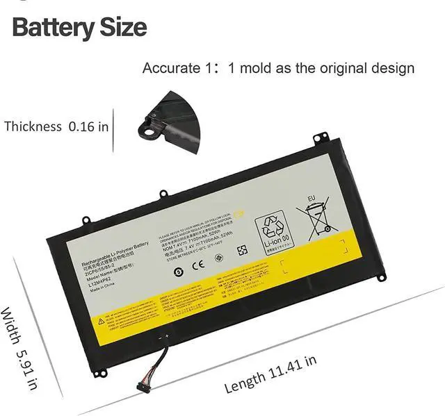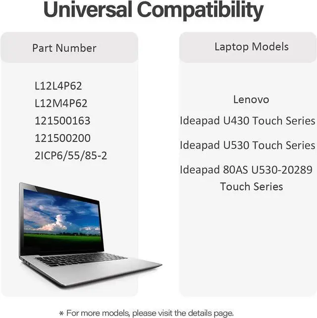 L12M4P62 Laptop Battery Compatible for Lenovo Ideapad U430 59372369 59399823 U430p-59428492 U530 80AS U530-20289 Series L12L4P62 2ICP6/55/85-2 121500163 121500200 7.4V 52Wh
