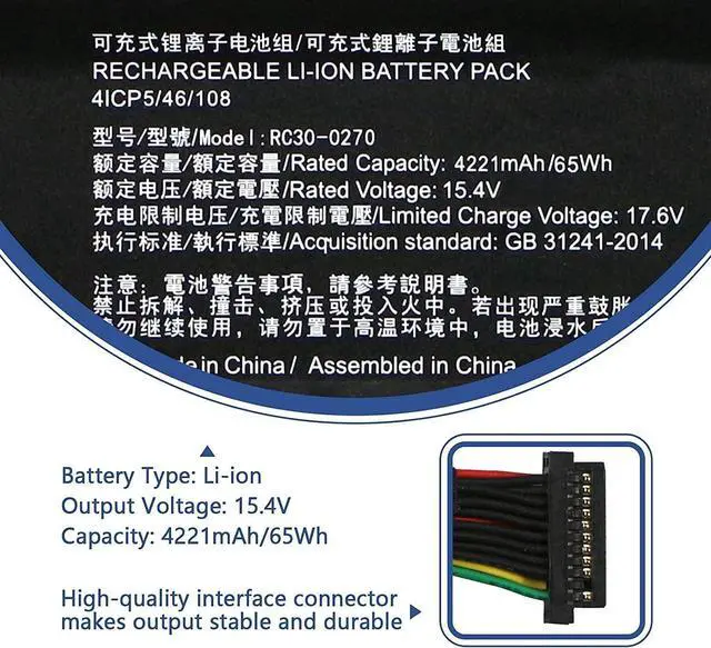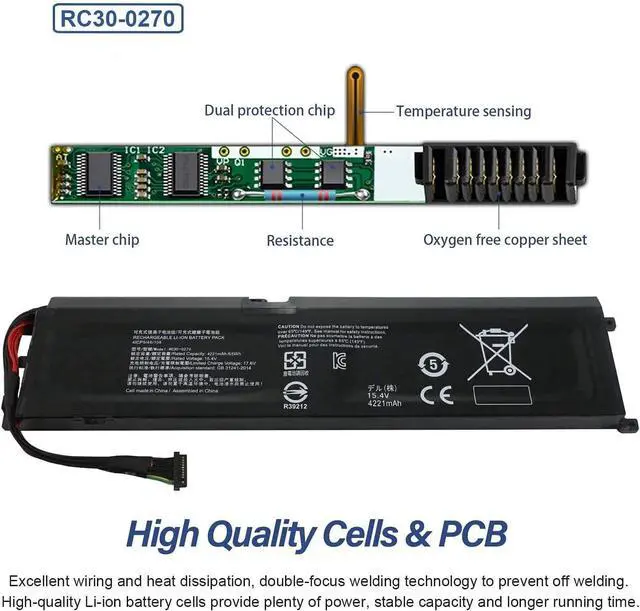 RC30-0270 Batería de Repuesto para computadora portátil Compatible for 2018 2019 i7-8750H 9750H RZ09-0270 RZ09-02705E75 RZ09-0300 RZ09-03009 RZ09-03006E92 RZ09-03009E97 RZ09-02705E76 4ICP5/46/108
