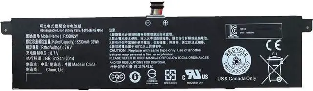 R13B01W R13B02W 7.6V 39Wh Batería de Repuesto para computadora portátil Compatible for Xiaomi Mi Air 13.3"