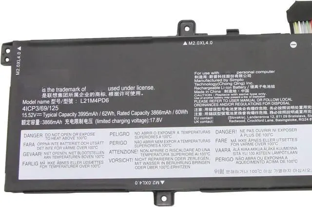 L21M4PD6 15.52V 62Wh 3995mAh Laptop Battery Compatible for Lenovo ThinkBook 14 G4+ IAP 21CX SB11E40212 5B11E40202 L21D4PD6 L21L4PD6 L21M3PD5 L21C3PD5 L21L3PD5