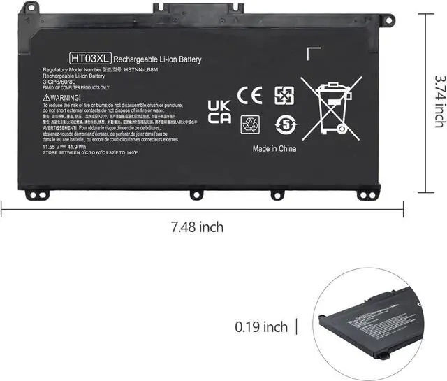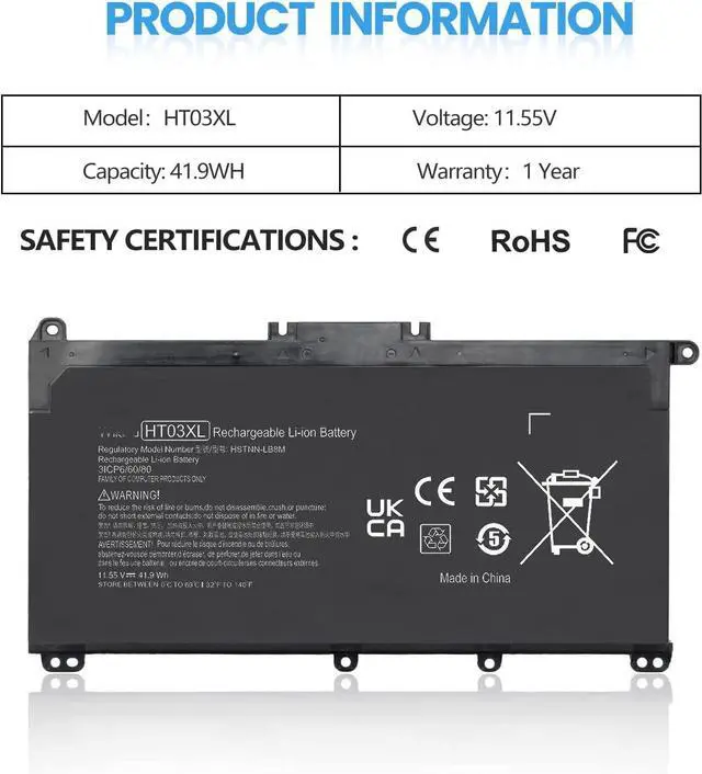 HT03XL TF03XL Batería de Repuesto para computadora portátil Compatible for HP 14-CE 14-CF 14-CK 14-DF 14-DH 14-MA 14-cm 14Q-CS 15-CS 15-DA 15-DB 17-by 17-CA 240 245 250 255 G7 340 348 G5 L11119-855
