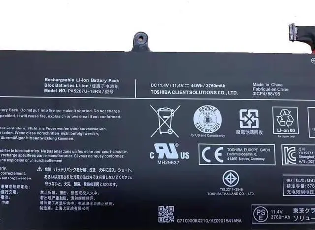 11.4V 44Wh PA5267U-1BRS Batería de Repuesto para computadora portátil Compatible for Toshiba X20W-D-10Q X20W-D-11N X20W-D1252 -E-10X -D-14G -E-BTO -D-10R