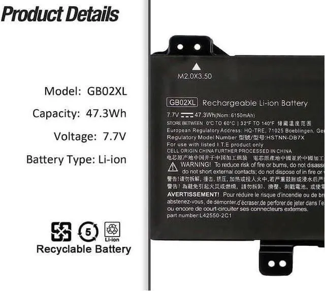 GB02XL Batería de Repuesto para computadora portátil Compatible for G2 EE 11 x360 14-DB0051CL Series HSTNN-IB8W L42583-005 L42550-541 L42550-271 HSTNN-UB7M HSTNN-DB7X
