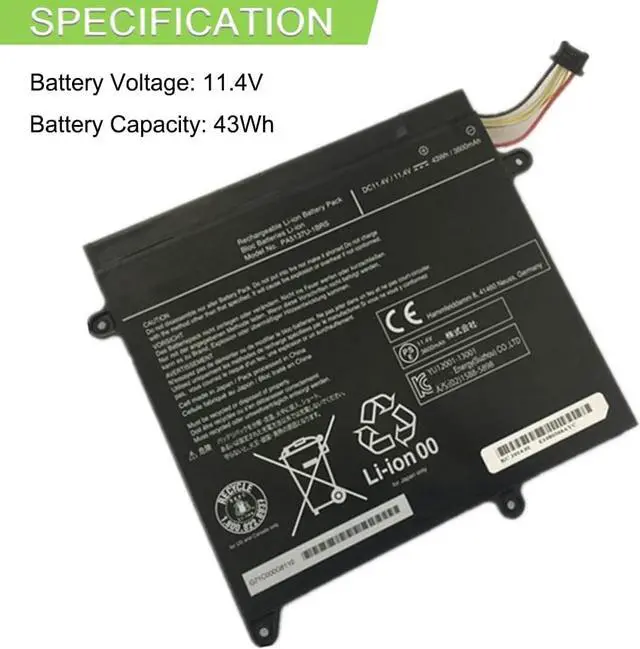 11.4V 43Wh 3600mAh PA5137U-1BRS Batería de Repuesto para computadora portátil Compatible for Toshiba Z10 Z10t-A-13V PA5137U