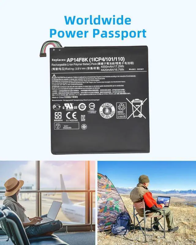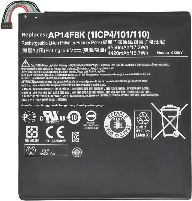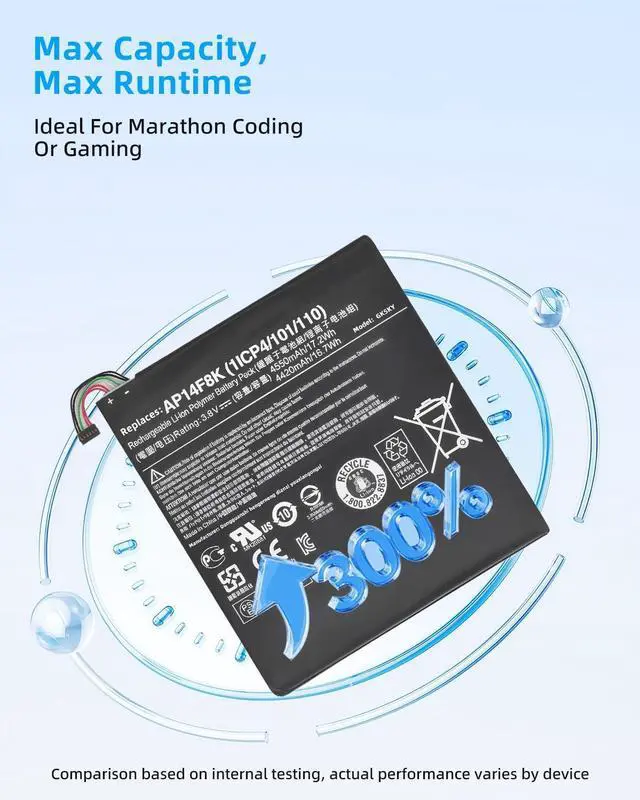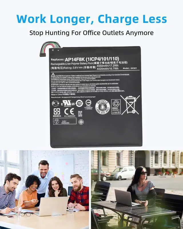 SPECIFICATION : Model Name:AP14F8K Voltage: 3.8V; Capacity: 17.2Wh Grade A cells ensure fast charges and low power consumption; Built-in circuit protection ensures both safety and stability. Condition: 100% New; Battery life: More than 1000 cycles.