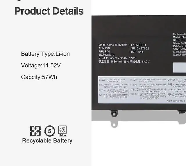 57Wh L18M3PD1 L18L3PD1 L18C3PD1 Laptop Battery Compatible for Lenovo ThinkPad T14S ThinkPad T490S T495S SB10K97652 02DL014 SB10K97651 02DL013 L18M3PD2 SB10K97653 02DL015 02DL016