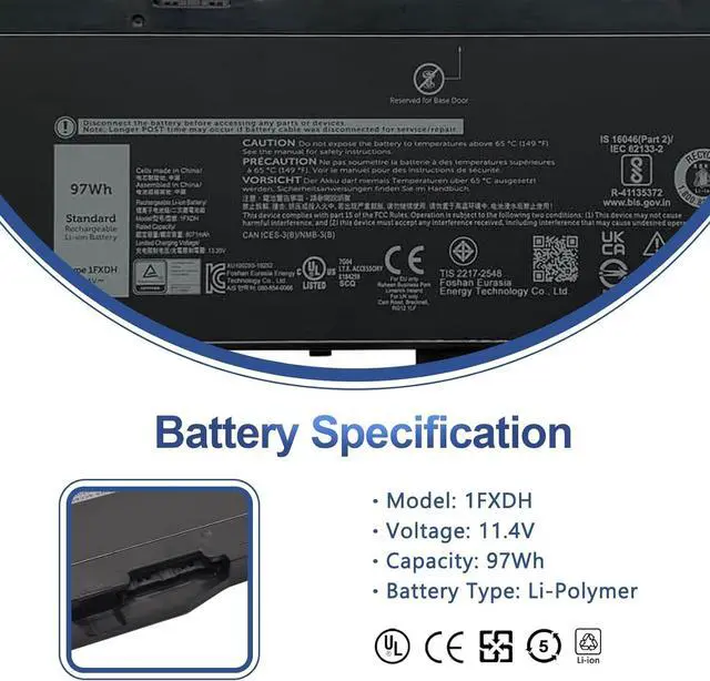 1FXDH Batería de Repuesto para computadora portátil Compatible for Dell Precision 3541 3551 Latitude 15 5501 5511 E5501 E5511 1WJTO 01WJT0 D191G 0D191G 451-BCNU 451-BCNV 01WJT0 1WWW JT00 IFXDH
