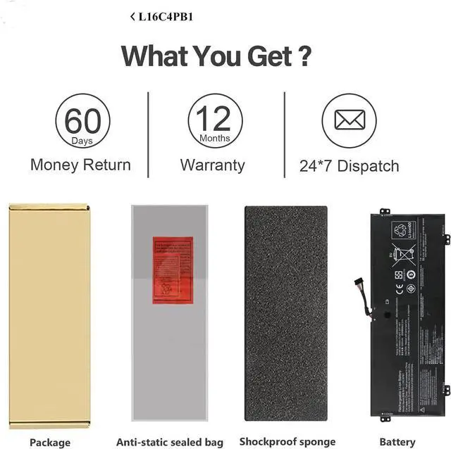 L16C4PB1 Laptop Battery Compatible for Lenovo IdeaPad Yoga 730-13IKB 730-13IWL 720-13IKB Series L16M4PB1 L16L4PB1 5B10M52739 5B10M52740 2ICP4/43/110-2 5B10Q38237 5B10W67264 5B10Q38238 48Wh