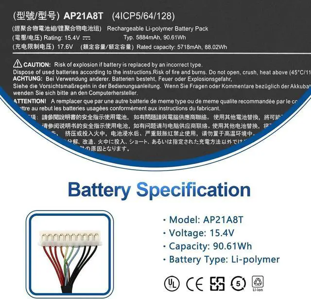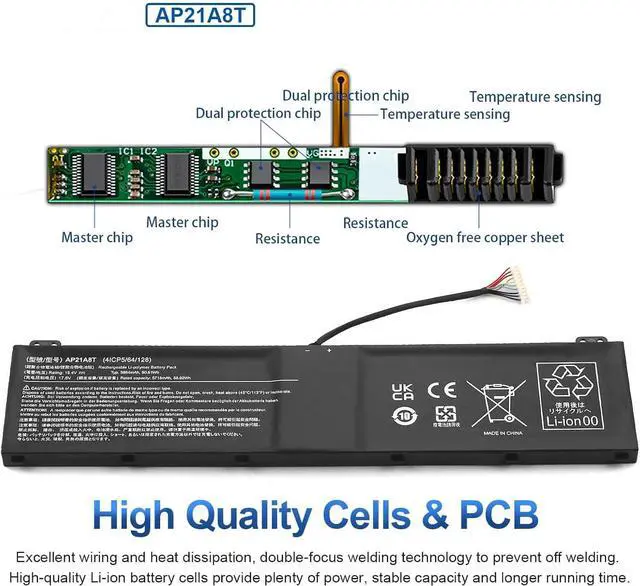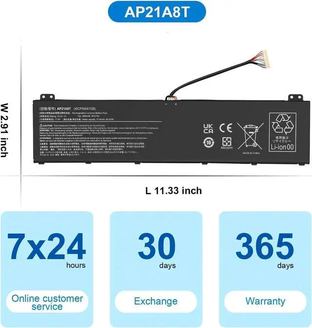 15.4V 90.61Wh AP21A8T AP21A7T AP21A5T Batería de Repuesto para computadora portátil Compatible for Nitro 5 AN517-55 18 PH18-71 300 PH315 PH317 PH315-54 PH315-55 PH317-56 PH317-56