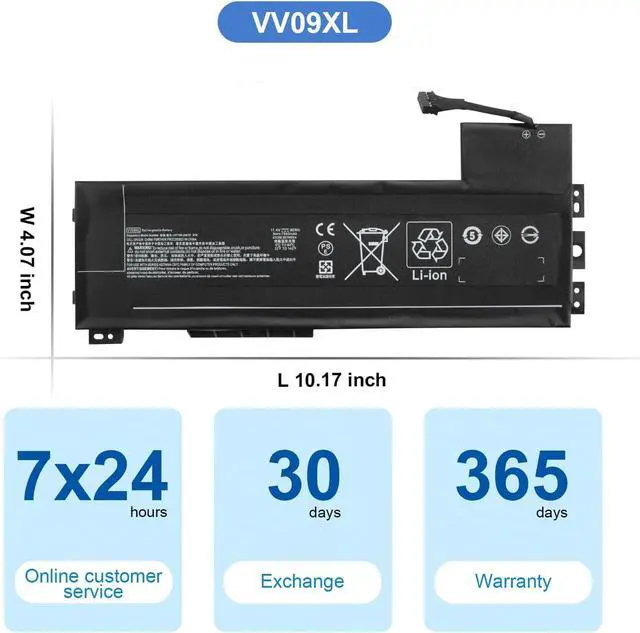 90Wh VV09XL Batería de Repuesto para computadora portátil Compatible for HP ZBook 15 G3 G4, ZBook 17 G3 HSTNN-DB7D HSTNN-C87C 808398-2B1 808398-2C1 808452-002 808398-2C2 VV09090XL 11.4V 9-Cell