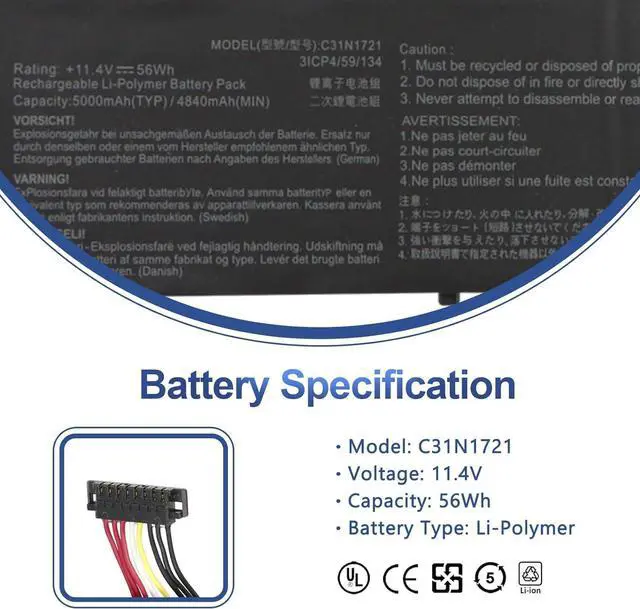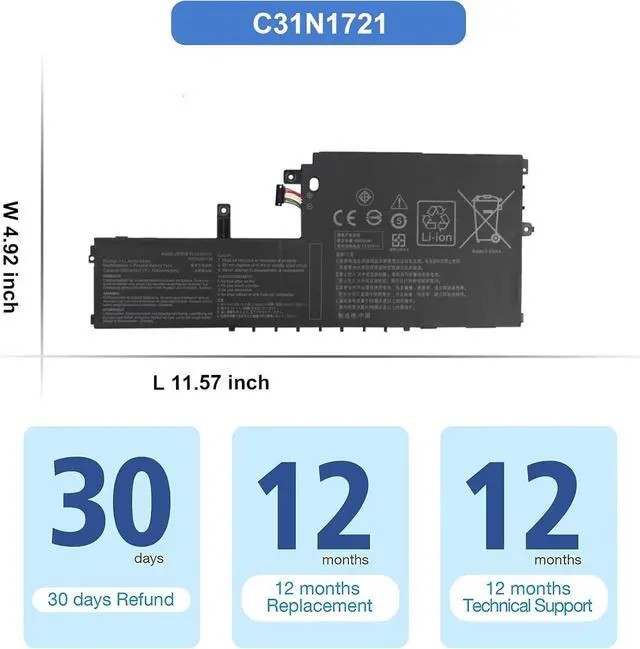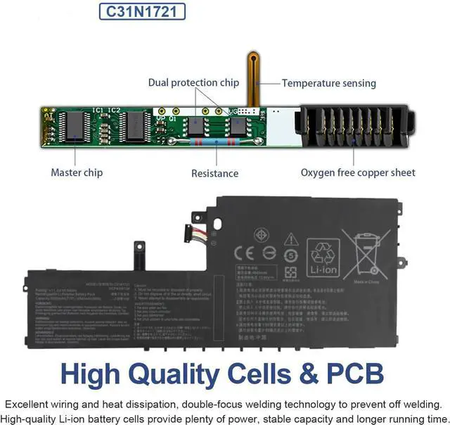 56Wh C31N1721 Batería de Repuesto para computadora portátil Compatible for ASUS E406 L406 R420 E406SA E406MA R420SA R420MA L406SA L406MA E406SA-BV211T E406SA-BV247TS E406 MA-BV533 9TS E406MA-EK065T
