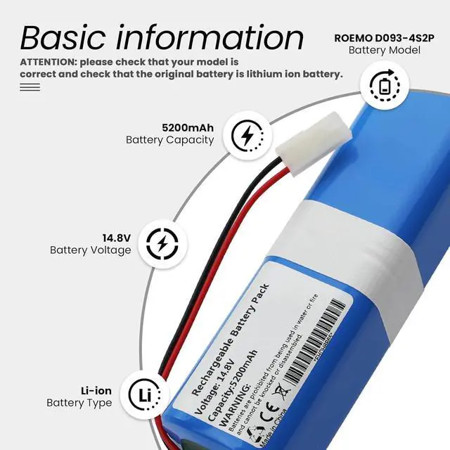 Batería ROEMO SYB2 SYB2 Pro 14.8V 5200mAh Compatible para Aspiradora ROEMO D093-4S2P