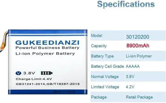 High Capacity & Long Standby Capacity: 8900mAh. More energy storage,Brand New 0 Cycles,longer standby time.