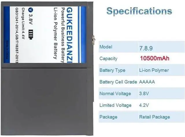 Compatible Models This is an independent lithium polymer battery that is not sold with the product. Battery Model: 7.8.9. This Replacement battery Compatible for Apple iPad 7 8 9 A2197 A2200 A2198 A2199 A2270 A2428 A2429 A2430 A2792 A2602 A2603 A2604. Before purchasing, please ensure that it matches your device model.