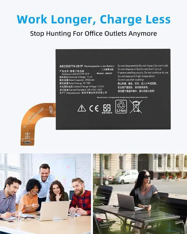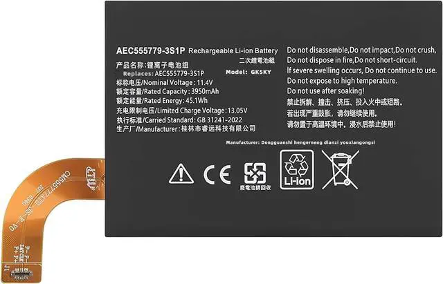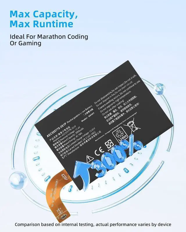 SPECIFICATION : Model Name:AEC555779-3S1P Voltage: 11.55V. Capacity: 45.05Wh/3900mAh. Grade A cells ensure fast charges and low power consumption; Built-in circuit protection ensures both safety and stability. Condition: 100% New; Battery life: More than 1000 cycles.