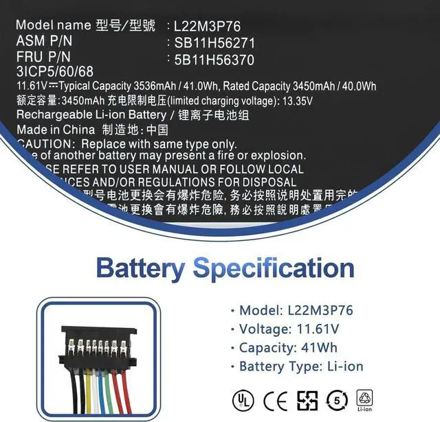 11.61V 41Wh L22M3P76 L22L3P76 L22D3P76 Laptop Batterie Compatible for Lenovo ThinkPad X13 Gen 4(21J3 21J4)/YOGA GEN 4(21F2 21F3)/ThinkPad X13 2-IN-1 GEN 5(21LW 21LX)/X13 GEN 5 (21LU 21LV)