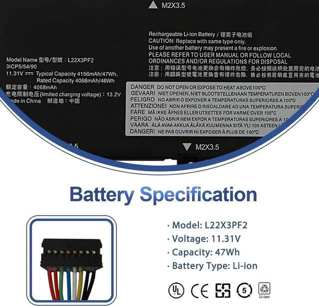 11.31V 47Wh L22X3PF2 L22D3PF2 L22B3PF2 L22C3PF2 L22M3PF2 Laptop Battery Compatible for Lenovo V14 V15 G4 AMN, IdeaPad Slim 3 14IAH8 14IAN8 14AMN8 15IAN8 15IRH8 15IRU8 16IAH8 Series