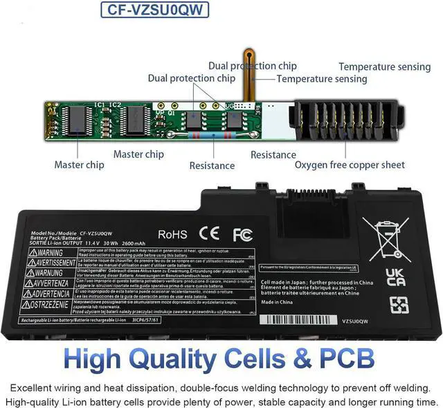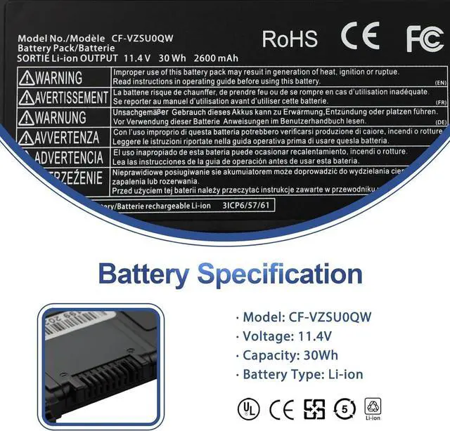 11.4V 30Wh CF-VZSU0QW CF-20 FZ-A2 Laptop Battery Compatible for Panasonic ToughBook CF-20 FZ-A2 Mk1 Tablet PC CF-VEK20 CF-20A0205NG CF-20A0205TD FZ-A2A203CA3 CF-VZSU0QJS CF-VZSU0QK CF-VZSU0QR