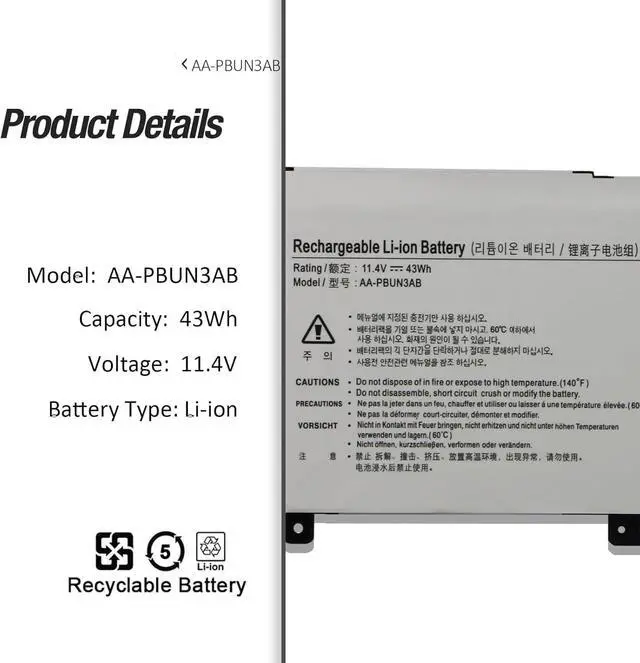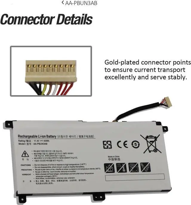 11.4V AA-PBUN3QB AA-PBUN3AB Laptop Battery Compatible for Samsung NP530E5M NP500R5M NT500R5M NT500R5L NT500R5N NT500R5P NT500R5Q NT500R5W NT501R5L 530E5M 500R5M 500R5L 500R5P 500R5Q 500R5W 501R5L