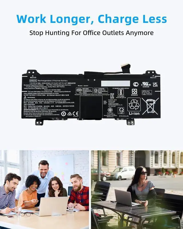 COMPATIBLE P/N:GH02XL, GHO2XL, L75783-005, L75253-271, L75253-AC1, L75253-2C1, L75253-541, GH02047XL-PL, HSTNN-DB9M, HSTNN-IB9C