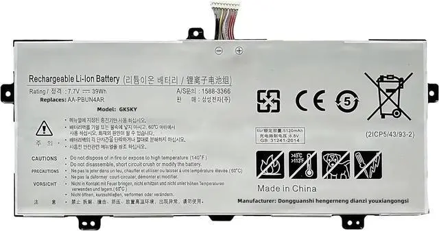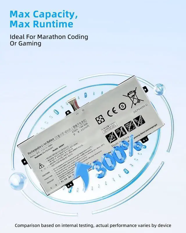 SPECIFICATION : Model Name:AA-PBUN4AR Voltage: 7.7V . Capacity: 39Wh/5120mAh Grade A cells ensure fast charges and low power consumption; Built-in circuit protection ensures both safety and stability. Condition: 100% New; Battery life: More than 1000 cycles.