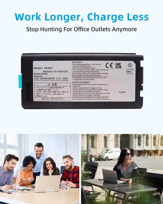 • SPECIFICATION : Model Name:CF-VZSU29AS-Black Voltage: 11.1V . Capacity: 7650./84.91wh Grade A cells ensure fast charges and low power consumption; Built-in circuit protection ensures both safety and stability. Condition: 100% New; Battery life: More than 1000 cycles.