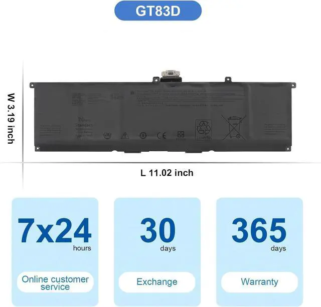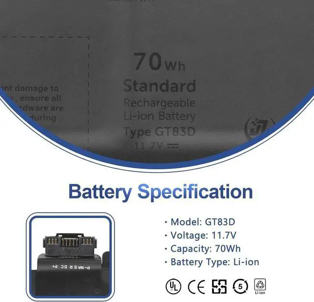 11.7V 70Wh GT83D Batería de Repuesto para computadora portátil Compatible for Dell XPS 14 9440 Series