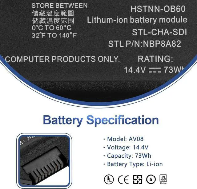 493976- 001 501114-001 586593-341 586593-362 586593-421 586593-422 AV08 AV08073 AV08XL