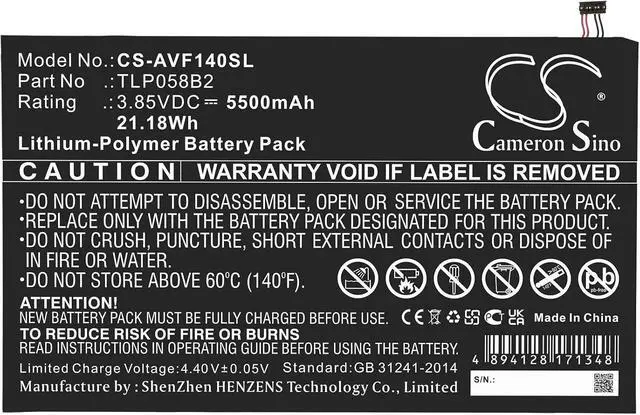 Compatible Model Battery for Tab Prime 7,VFD-1400