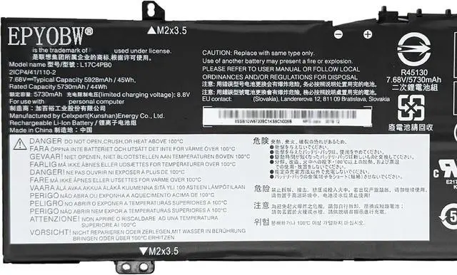 (Note: Lenovo ideapad 530S-14IKB (Type: 81EU), ideapad 530S-14ARR (Type: 81H1) and ideapad 530S-15IKB (Type: 81EV) have two different capacities: L17C4PB0 L17M4PB0 45Wh and L17C4PB2 L17M4PB2 34Wh, suitable for different laptops. You can open the back of the laptop to check the original battery model.)