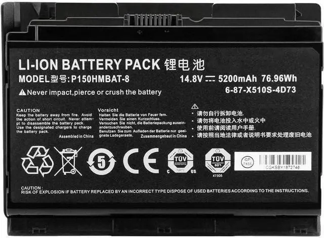 14.8V 5200MAH 76.96WH P150HMBAT-8 Laptop Battery Compatible for CLevo P150SM P151SM1 6-87-X510S-4D72 6-87-X510S-4D73