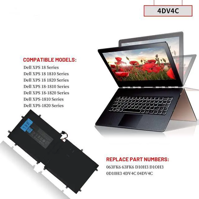 14.8V 69Wh 4DV4C Batería de Repuesto para computadora portátil Compatible for Dell XPS 18 1810 1820 Series D10H3 63FK6