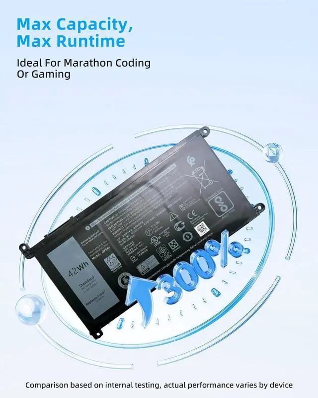 SPECIFICATION : Model Name:51KD7 Voltage: 11.4V Capacity: 42Wh/3500mAh; Grade A cells ensure fast charges and low power consumption; Built-in circuit protection ensures both safety and stability. Condition: 100% New; Battery life: More than 1000 cycles.51KD7